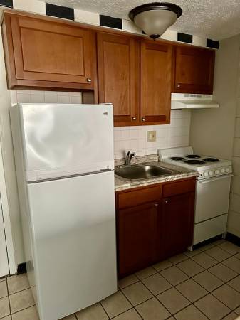 This 1-bedroom features an island counter to provide a more comfortable living room space Spruce it up with a couple bar stools for an efficient but modern dining area!
