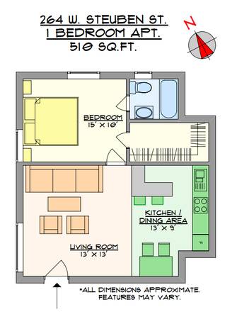 – Comfy and cozy 1BR bedroom bedroom space, perfect amount of room for all of your furniture needs.