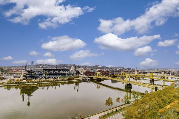 Welcome to the River View at The Venue Apartments—an exquisitely renovated 2-bedroom home offering breathtaking, unobstructed views of the rivers, stadiums, city skyline, and Pittsburgh’s iconic bridges. Enjoy one of the most dramatic vantage points in all of Downtown, where every window frames a postcard-worthy scene.