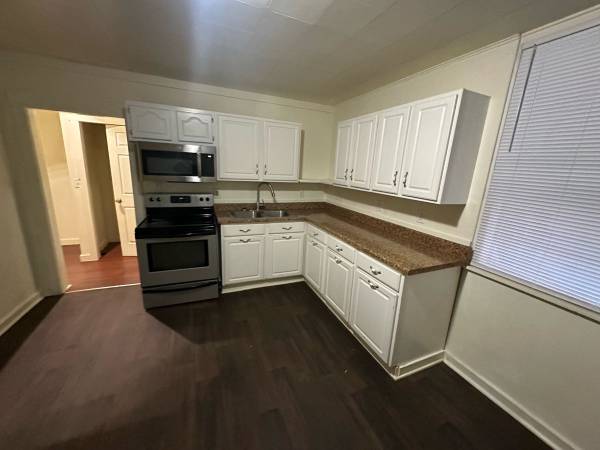 Other amenities include one full bathroom which has a bathtub and shower, the other is a full shower only. The unit has central A/C, laundry hookups in the unit for a stackable set of laundry machines (machines not included), stove, microwave, and refrigerator are included.