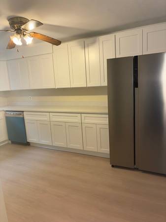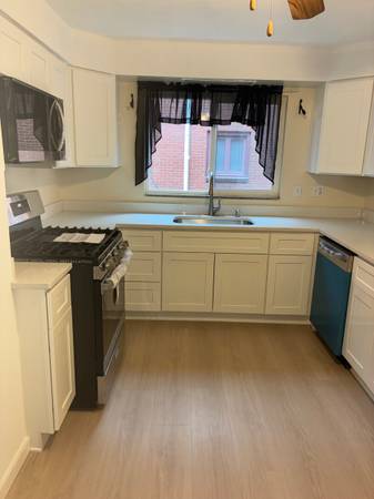 Brand, new kitchen with all new stainless appliances, separate dining room, bright large living room with fireplace. 2 bedrooms. Master suite with two closets and a 3/4 bathroom. 2nd bedroom with two closets and full bath off the hallway. Shared porch. Central air. Cable TV Ready. Fenced backyard. New Floors. Integral Garage with automatic garage door opener. Laundry: Free. Shared.