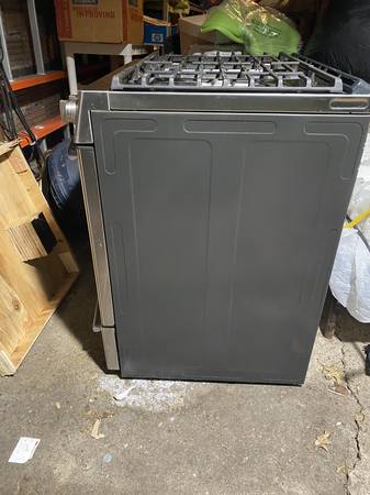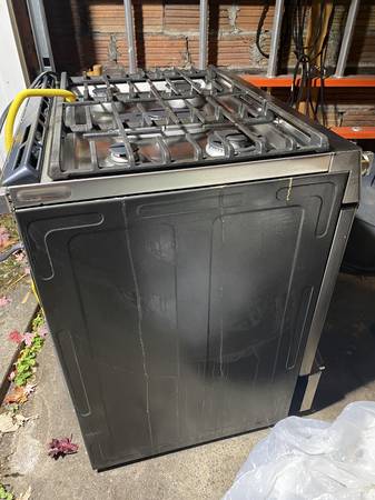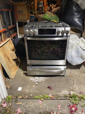 Five burner single oven can be converted to propane. Six years old. Replaced by electric range.