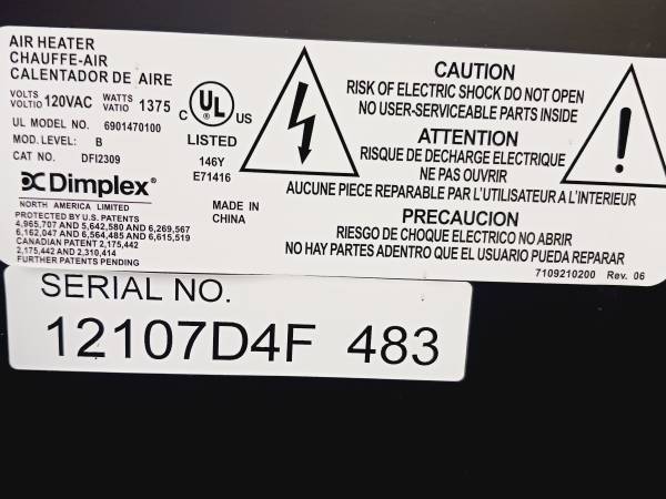 1375 watt Dimplex electric fireplace insert. I believe that it has never been used as there was no electrical outlet where this unit was installed.