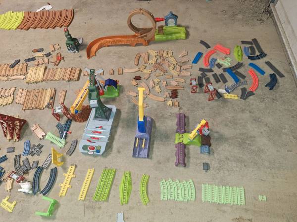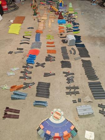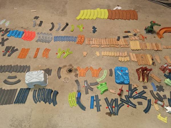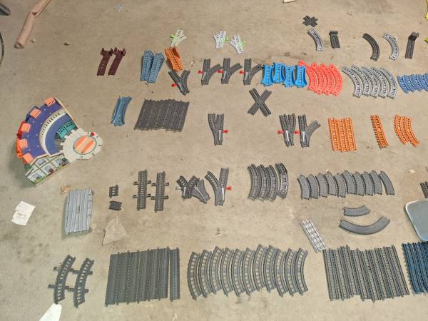 Huge lot of train tracks my kids have out grown. Plus whatever extras we find.