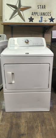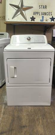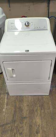 MAYTAG ELITE WHITE ELECTRIC DRYER. THIS IS A FEW YEARS OLD. THIS HAS MULTIPLE CYCLES, FEATURES & SETTINGS AS WELL. THIS IS A REALLY NICE, GREAT RUNNING, HEAVY DUTY, SUPER CAPACITY UNIT THAT WAS WELL MAINTAINED. THIS HAS MULTIPLE DRYING CYCLES. WE HAVE COMPLETELY CLEANED THIS UNIT INSIDE & OUT. I HAVE ALSO FULLY TESTED ALL THE CONTROLS & SETTINGS ON THIS UNIT, EVERYTHING WORKS & RUNS PERFECTLY FINE. DOES HAVE SPOTS THAT BEEN TOUCHED UP WITH APPLIANCE PAINT. SHOULD YOU HAVE ANY QUESTIONS PLEASE ASK. THANKS FOR LOOKING.