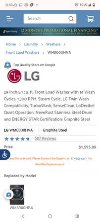 Brand New LG 29 Inch 5.1 cu. ft. Front Load Washer with 14 Wash Cycles, 1,300 RPM, Steam Cycle