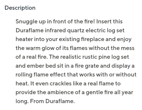 Duraflame Infrared Flame Pine Log insert heater with pine log for sale. $100.00 cash and carry.
