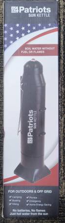 Brand new in the original box in perfect condition. Using only the power of the Sun this thermos can heat and boil water so that it is purified and allows you to make things like hot coffee soup etc. A must have item for survivalists.
