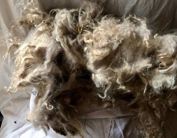 The mohair is lightly skirted, so expect some hay, straw and other ‘veggie’ matter in your bundle.