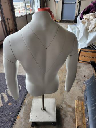 Used to take photos for advertising. The arms, shoulders, and neck (in two places) removes. On a rolling stand.