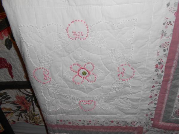 Hand made quilt Quilted with embroidery and candle wicking - $150 (Ligonier Pa.)
