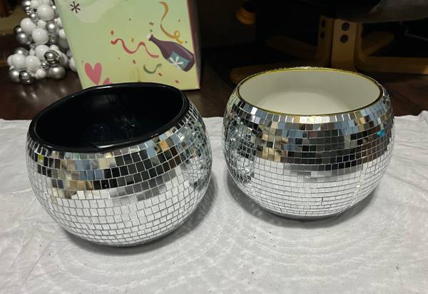 Let’s Party neon sign, 22 white flower panels for backdrop, shiny backdrop, 23 battery operated candles, plastic silverware, black napkins, hats, glitter pendant, disco plastic cups, garlands, 2 mirror ice buckets, 8 fairy lights, large cool fabric, big bag of light up flower leis, 7 mirror votive holders, 2 arch frames, 5 light up beverage pitchers, 14 tablecloths and more!