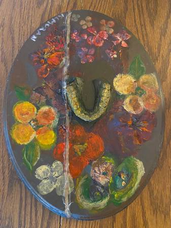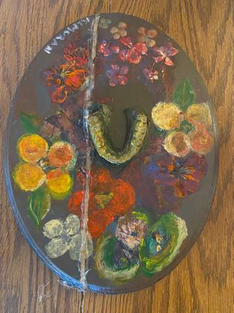 This cracked down the middle so I glued it and it. It can not hang up on the wall. It can be leaned or put on an easel. I took money for the crack in the middle of the painting.