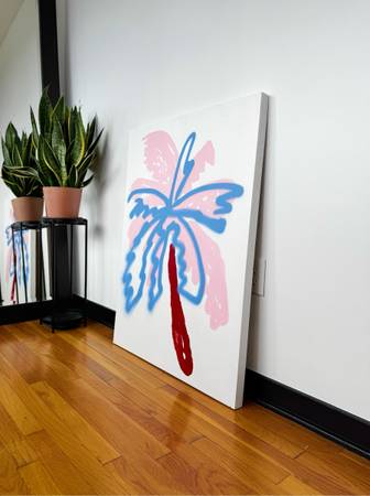 Wall Art, Palm Graffiti, Contemporary Abstract Art, Pink & Blue & Red (30” x 40” x 1.5”)