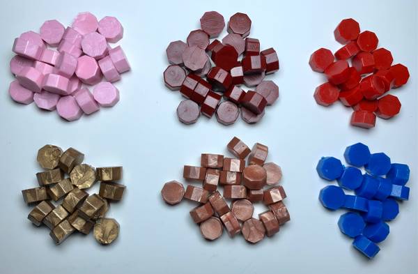 There are 100+ wax beads, with there being 13-24 per pile of beads. To make wax seals, put 4 beads in the spoon. Then hold it over the flame of a candle. If you hold it too close to the flame, it may get bubbles, which may show up on your seal. I used 3 wax seal beads in the photo, so if you use 4, your seal will most likely look more complete.