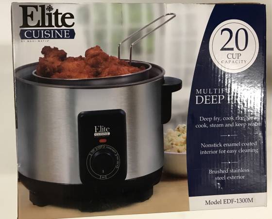 New 11” ceramic non stick forged aluminum frying pan with lid $7.00 New Multi function 20 cup deep fryer plus other features $7.00 2 New 2 slice toasters. $5.00 each 1 New 4 cup coffee maker $5.00 1...