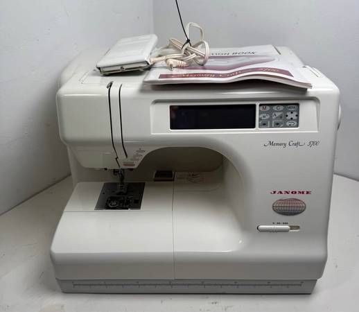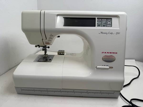 Janome Memory Craft 5700 Sewing Machine W/ Power Cord, Pedal & Lid Accessories. This was used for one project in 2001 and has not been used since. Lost the original power cord but found a...
