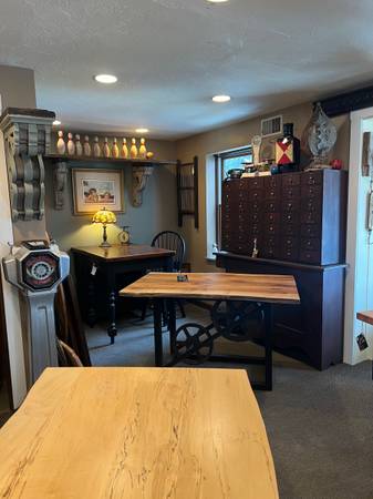 We specialize in making tables from reclaimed wood, live edge slabs with both traditional legs or several styles of metal legs.