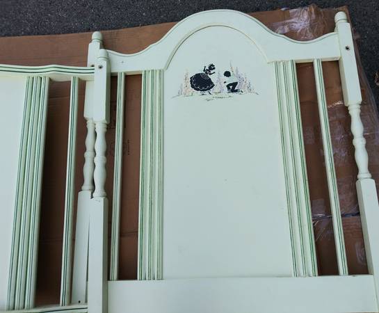 Antique 1930s baby crib head/foot boards and side rails only. Was repainted around 1985. Been in storage since 1995. Some staining. Will need cleaned up or possibly repainted. OBO