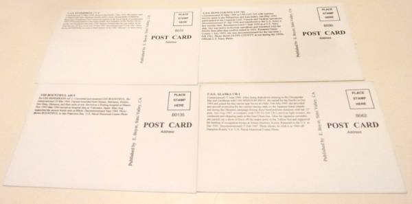 Group of 20 Naval Ships postcards. B&W postcards published by E. Boyer, Simi Valley, CA. Excellent condition. Unused. I show all of the postcards and 2 of the backs with information on ship. All...