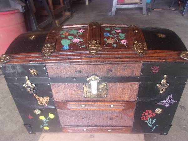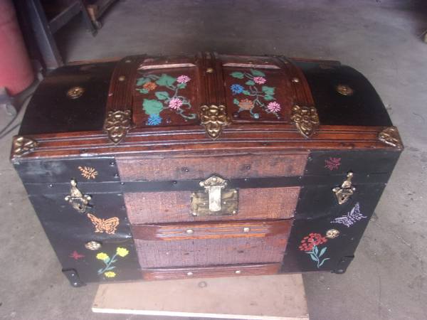 CEDAR LINED, FELT LINED TRAY, WITH HAND PAINTED WILD FLOWERS. W-15 L-26 H-17 $100