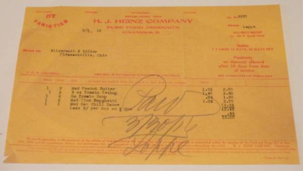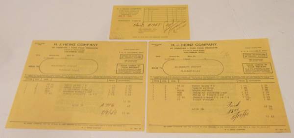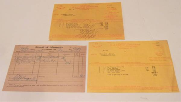 6- Vintage Heinz Company billing/allowance invoices. 3- are from 1916 2- are from 1940 1 is from 1941 GOOD Condition. All 6 for $6.00