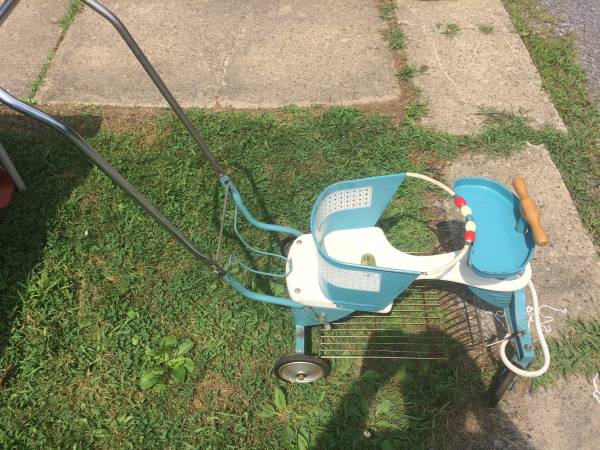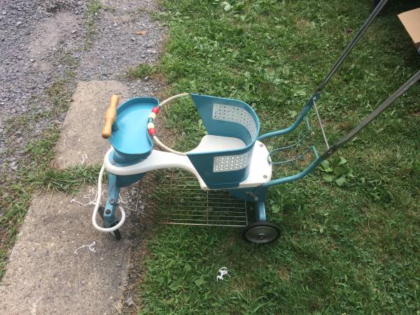 The tray handle and foot grate are intact. The foot grate and push handle can be removed to turn this into a walker. Other websites like eBay, Etsy, Facebook, etc., are asking as much as $380.00 for ones that are in much worse shape with more rust and missing pieces. In fact, if you are more ambitious than I am, buy this one and turn around and sell it on Facebook for almost twice your money!