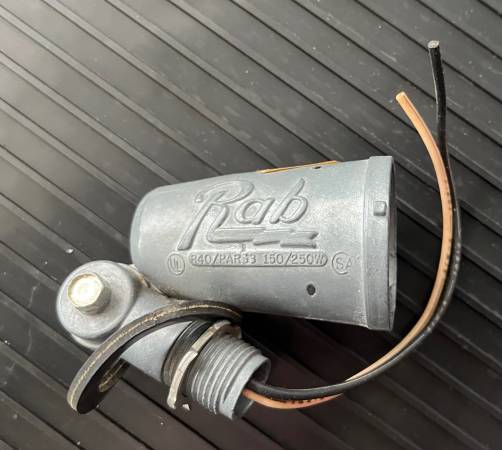 This flood light is model R100 and marked as R40150/250 watt. It's in nice shape and may never have been used.