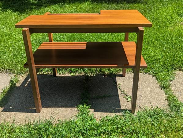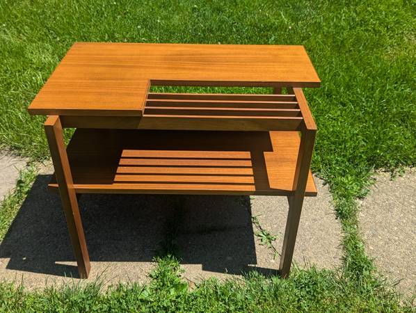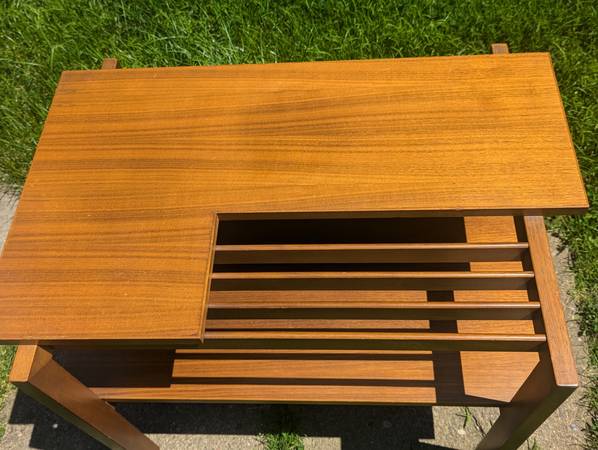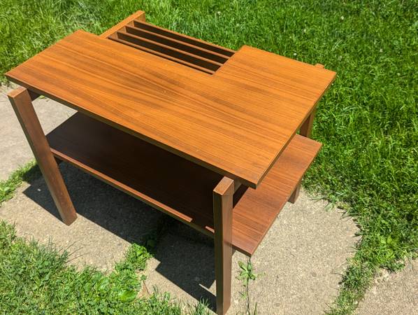 Greta Magnusson-Grossman for Glenn of California walnut two-tier occasional table with incorporated magazine rack. USA, 1954.