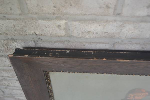 Large Antique chromolithograph framed under glass. this piece is titled "Letztes Leuchten" which is "Setting Sun" in English. The artist was Hans Beatus (Beat) Wieland, 1867-1945, Switzerland and it was published circa 1906. The publisher was B.G. Teubner, Leipzip and the printer was Klein und Volbert, Munchen (Munich). The frame is a period Arts & Crafts oak frame. Outer dimensions are 45" x 33 1/4" and inner dimensions (image) are 38 1/2" x 27". There are some minor scuffs on the frame but nothing too distracting. Asking $65 or best reasonable offer. Cash only, pick up in North Huntingdon, PA (Irwin).