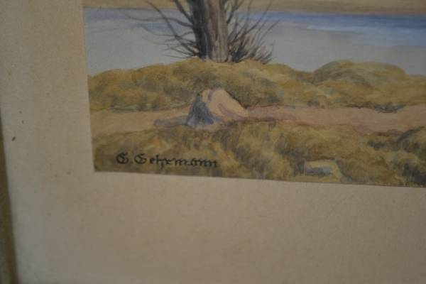 Vintage framed and signed landscape watercolor painting by G. Gehrmann . The fram is 10 1/8" x 12 5/8" while the image size is 6 7/8" x 10". The frame is in good condition but it needs a new mat and new acid free backing. Acquired in Germany between 2012 - 2015 and was framed in Frankfurt-Oder. Signed bottom left. Asking $75, cash only, door pick up in Irwin, PA