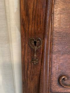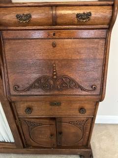 Antique Side-by-Side Oak Secretary desk and book case with glass door and lock. Skeleton key works.