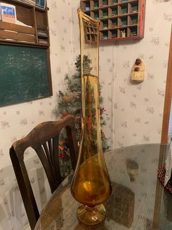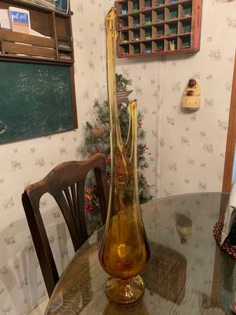 Large 25 inch tall Amber Vase by LE Smith. No chips or cracks. No Shipping.