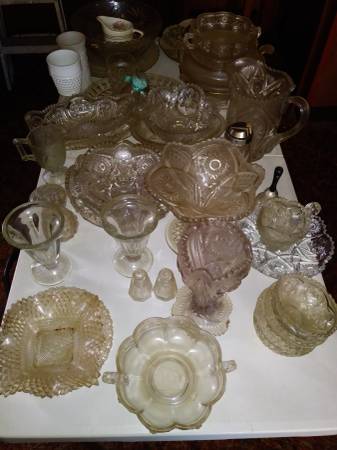 Here is some old items which was my Parents and Grandparents, Cups etc, trimmed in Gold some silver plates,LOTS of Cut Glass items (needs cleaning no cracks) Aluminum tea set from france,a few dolls,a old singer sewing machine that works,a old desk very used, A framed Baby Picture very old, The top of the sewing machine has a blemish didn't try to clean it off,I can send close up pictures of certain items if needed.Also I have Also Antiques, These items I never looked up any values to them so I'm asking for BEST OFFERS given show contact info