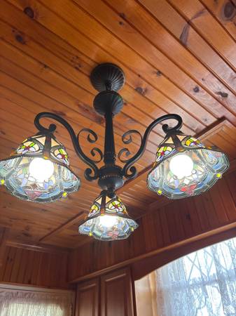 Tiffany style chandelier 22” at widest point. For 3 bulbs. (Not sure if this is dimmable) $150