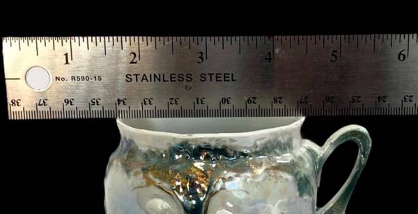 The first 9 photos (that I took) are all unedited. The luster of this teacup is in remarkably good condition. I do not have measurement photos of this teacup, but it is about 3-4 inches tall, including the handle. It’s not the tallest teacup, but it is very round, so it can hold a decent amount of tea.