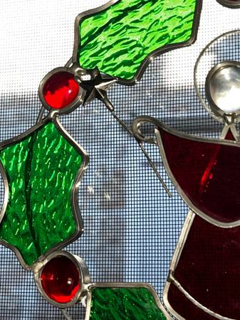 Beautiful 8.5” diameter stained glass angel with a star surrounded by a Holly and berries