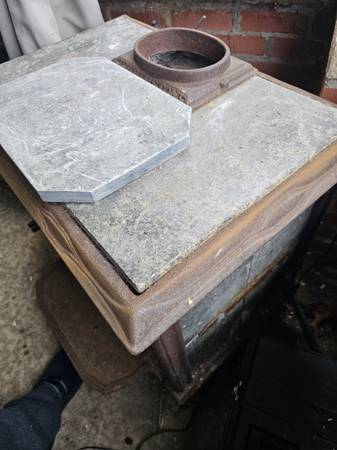 Older Jesse Perry Cast Iron Stove. Needs some TLC, also has a crack on the top slate tile, but functional. Will need to be vented. Pickup only in the North Hills.