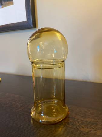 Mid century modern atomic art glass Apothecary or Pharmacy style jar canister with bubble top, possibly Federal Glass Approximately 9.5” tall Good vintage condition