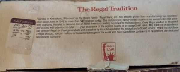 Selling NEW Regal Electric Knife in box. Box is a little worn but t he knife is new and never been used. $20.00