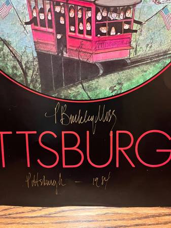 Unframed Signed personalized and dated 1985 Pittsburgh City Print Art Poster by famous American artist P Buckley Moss