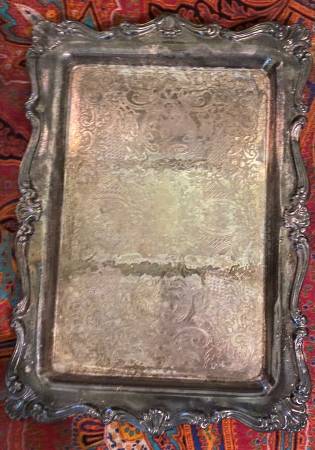 This is a beautiful antique silver tray for tea or jewelry around the house. This could be put on your dresser to put jewelry or watches and earrings on.
