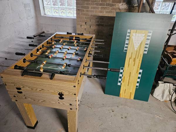 This is a Sportcraft multi-game table we inherited for free from a friend. Foosball table is the most functional part. Other games like tabletop hockey, billiards, Ping-Pong, etc. would need a little work and new part investment to use. Would rather give it away to a good home that will enjoy it vs. put it out on the curb.