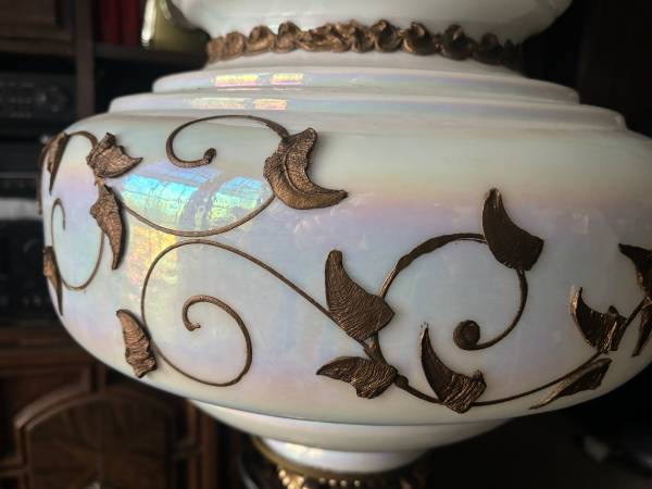 Move and unfortunately have to sale my two awesome lamps (no lampshade - see pic). White pearl rainbow body with handmade bronze incrustation. Looks amazing. $60 each., Harry!