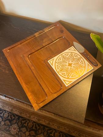 Great mid century Ann Gentry ceramic tile and Walnut charcuterie tray/cheeseboard. Great condition with original walnut knife with some light wear, please Look at photos for condition. This vintage tray is in excellent vintage condition, showing some light age appropriate signs of general wear.