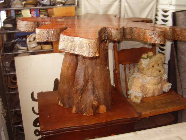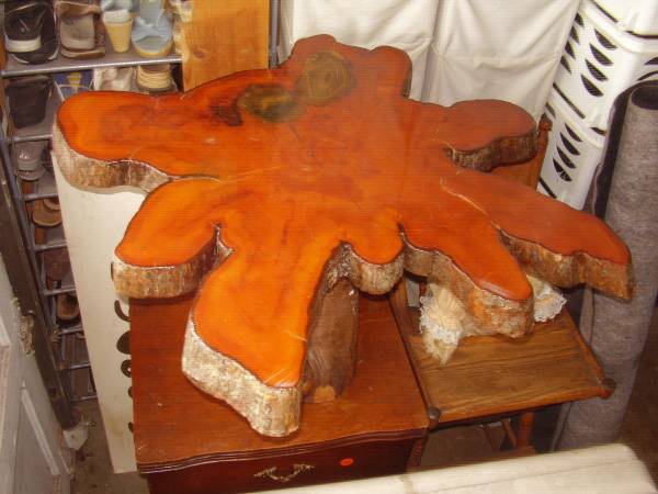 Beautiful cypress tree table has survived some moves and misshaps, but remains in solid condition. Could use a bit of cosmetic tlc. $75 local cash sale. Will not ship. Call or text 4one2 812-91four2...