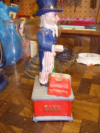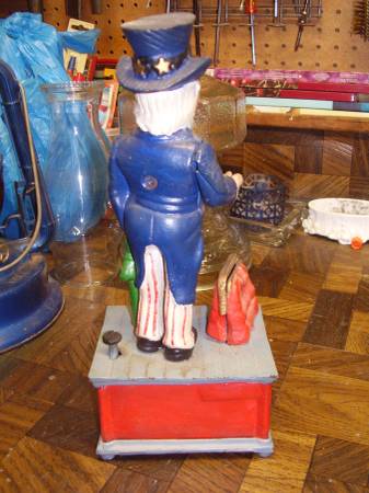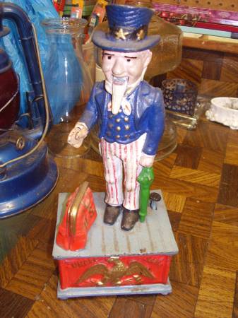 Uncle Sam cast iron bank made in the 70's for the US bicentennial in excellent condition. $45 local cash sale. Will not ship. Call or text 4one2 812-91four2 if interested. Thank you