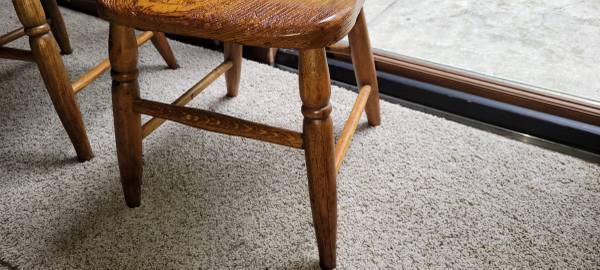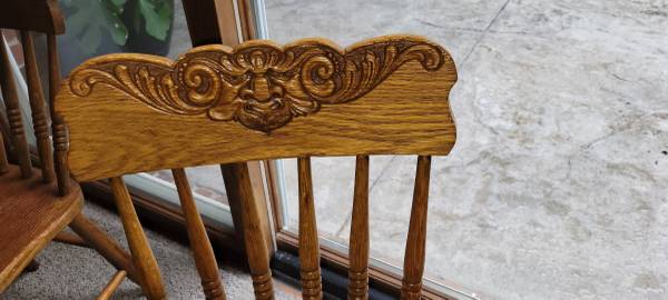 Children's 2 chairs. The chairs are sturdy and have a pressed back carving on the backs. These are 75 years old and in excellent vintage shape. Tag Antique Vintage Child