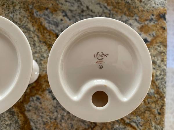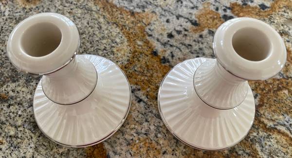 Lenox Made in USA 1 Pair Candle Holders Candlesticks 4.75" High Silver Trim NEW CONDITION 1 pair of Lenox Made in USA candle holders, candlesticks 4.75 inches high, base is 4 inches in diameter tall...