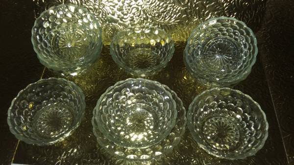 Anchor Hocking #1600 Bubble Dishes - Bowls, set of 8 clear Includes 1 clear Bubble saucer.